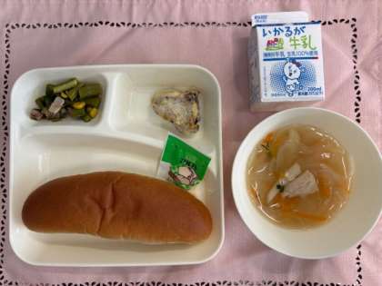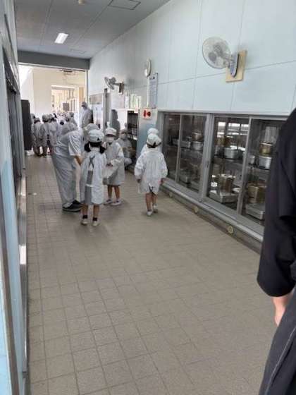 1年生の給食当番、しっかりと給食を受け取ることができるようになりました。