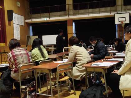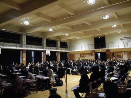 3年生が退席した後の児童机にも、参加者の方が移動してくださり、講堂はぎっしりです。今日の特別授業ライブのねらいがよくわかり、今後の実践にむけても、具体的なヒントをたくさんいただきました。