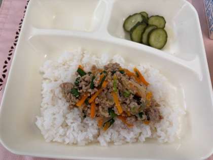 ・豚ひき肉とにらのそぼろ丼