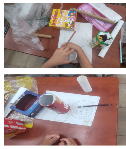 車あり、ミカンあり、カタツムリあり、同じ形からもいろいろな絵を連想していました。