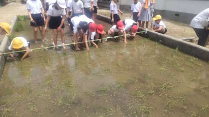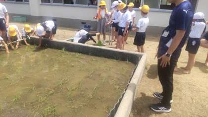 裸足で入る田んぼは、土が柔らかくて不思議な感覚だったようです。