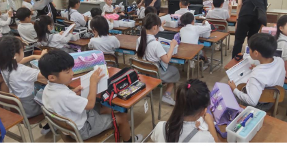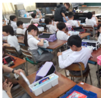 まっさらな絵具セットをみんなで一つ一つ確認していました。