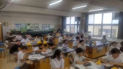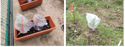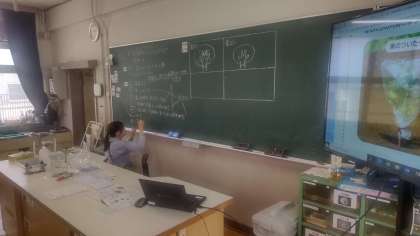 根から吸い上げた水が、導管を通り、葉から蒸散する、ということを学ぶ実験です。