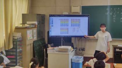 五十音表を見て、気づいたことや思ったことを発表していました。