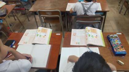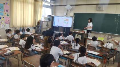 相手にわかりうやすく説明するために、「順序に気を付けて」文を作る学習の様子です。
