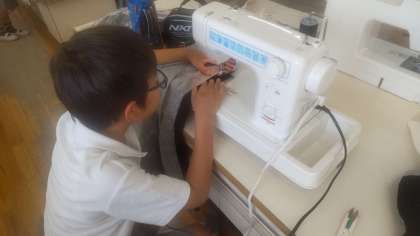 ミシンを使った経験がない子がほとんどなので、おっかなびっくりの人がほとんどでした。
