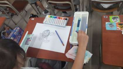 彩色している様子です。