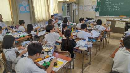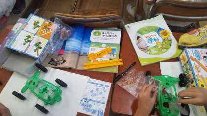 より遠く、より速く、車を動かすにはどうすればいいかを教材をつかって確かめていきます。