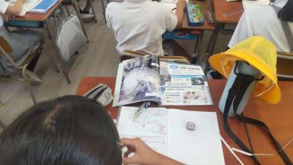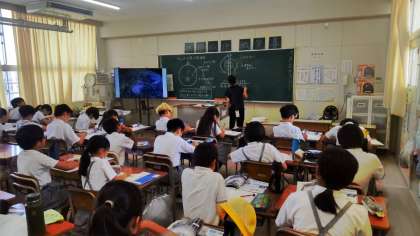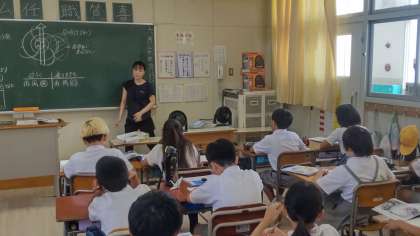 台風の仕組みについての学習の様子です。