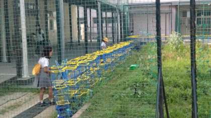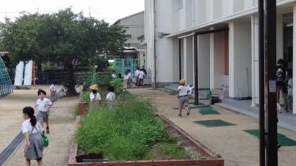 登校後、まず水やりの活動を毎朝行っています。