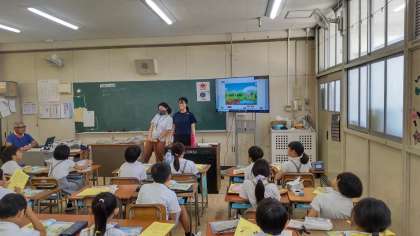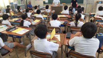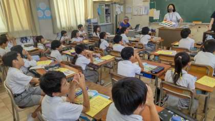 色の言い方の復習では、大きな声でしっかりと発音していました。