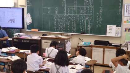 「看板とパンフレット」二つの説明文を取り上げて、それぞれの説明文の特徴や良さを学習しています。