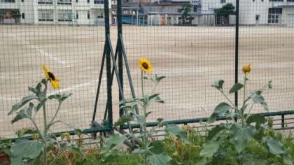 うだるような暑さの中でも、校庭には美しい花が咲いています。