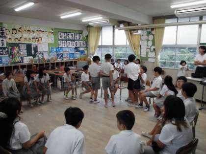 回っている時、4年生の2クラスでお楽しみ会が行われていました。