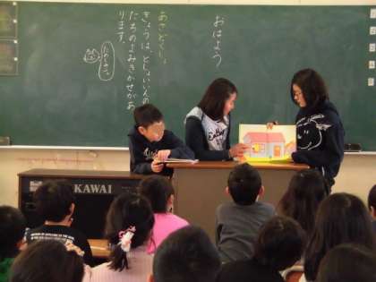 今日の朝読(あさどく)の時間は、1年生と2年生への読み聞かせのプレゼントがありました。