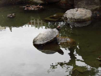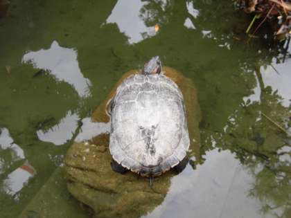 冬の間、亀池の底で冬眠していた亀吉が、今朝、目覚めました。