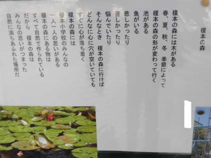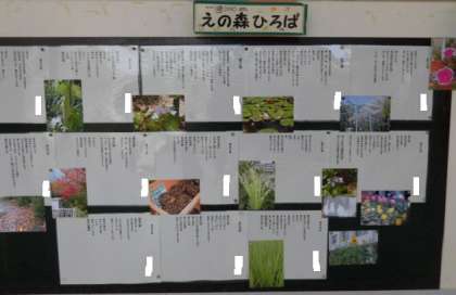 理科室前の掲示板「えの森ひろば」に、6年生の詩を紹介しています。えの森への一人一人の思いを、連詩として表現しました。みんなの心の中に、えのもとの森がしっかりと根付き、息づいていることを感じます。