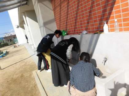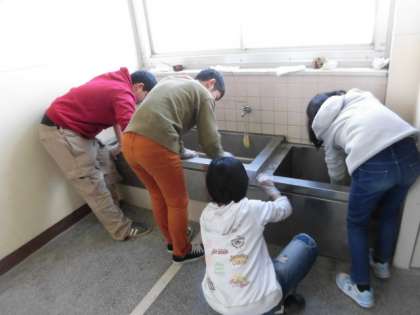 今回は、花王さんより清掃用のシートを提供していただきましたので、学校中の水回りを、ピカピカにすることにしました。