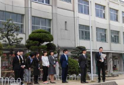 新しく本校に赴任した教職員の着任式と、1学期の始業式を行いました。