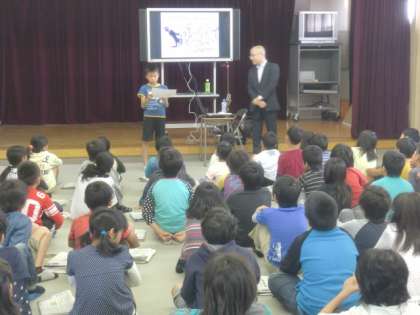 本日、2、3時間目に朝日新聞社の出前授業があり、新聞の作り方を勉強しました。実際の新聞を読んで、記事の書き方、見出しや5W1Hの大切さ、インタビューの仕方などをわかりやすく教わりました。子どもたちはプロの記者の方の新聞の作り方に興味津々で、記者の方への質問にもたくさんの手があがっていました。(発信 4年)