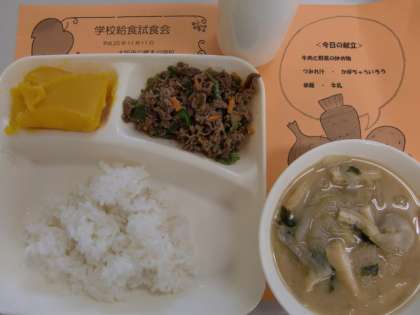 牛肉と野菜の炒め物・つみれ汁・かぼちゃういろう
