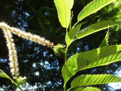 小さいけれど、鮮やかなグリーンのイガイガができています。これから秋にかけて大きくなり、立派な実になることでしょう。