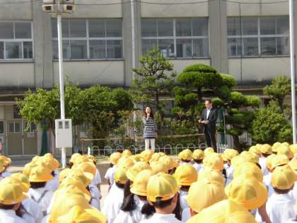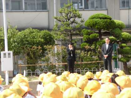 今日の児童朝会では、たくさんの方の紹介がありました。