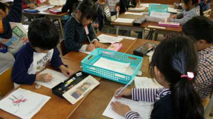 単元は「いろいろなふね」。自分の書いたパンフレットをもとに、活発に話し合っていました。