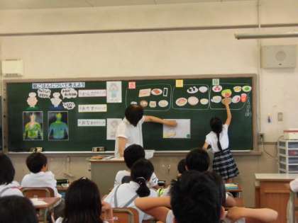 朝ごはんのはたらきを知り、一人一人が、赤・黄・緑のそろった、バランスのとれた朝ごはんのメニューを考えました。