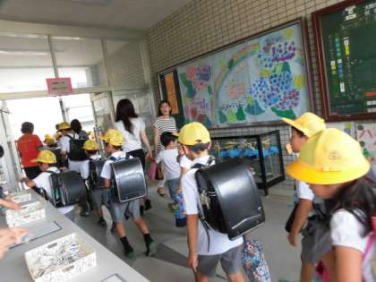 多くの保護者の方がご参観くださり、分団下校の様子を見ながら、集合場所まで帰ってくださいました。