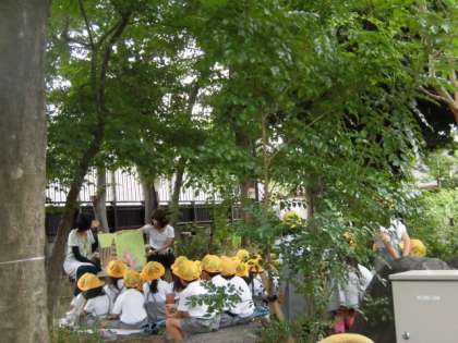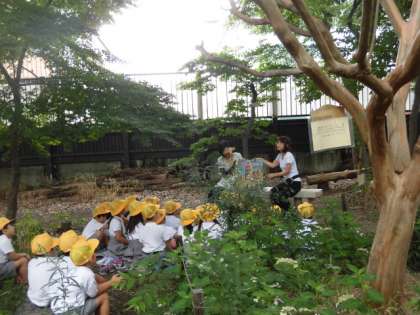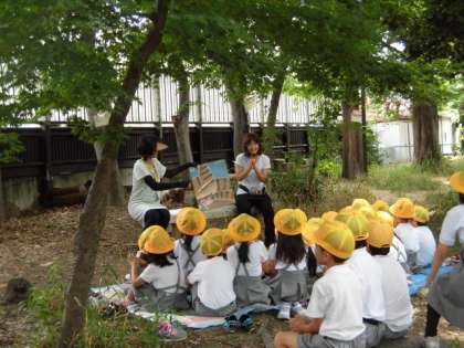 今日は、月に一度のハッピータイム。子どもたちが楽しみにしている、読み聞かせの日です。1年生には、えの森で読み聞かせをしていただきました。
