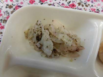 塩漬けして乾燥させた赤じそ(いわゆる「ゆかり」)を砂糖と薄口しょうゆで煮て、ゆでキャベツとあえています。ほんのりとしそが香る、大人の味でした。