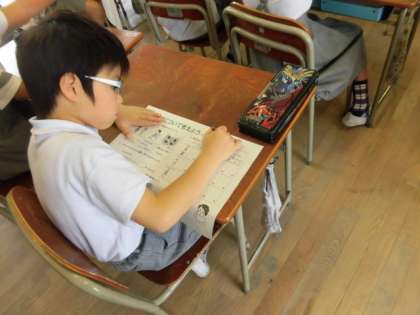 みんな真剣に聞き入って、ワークシートにわかったことや気づいたことを書き込んでいました。