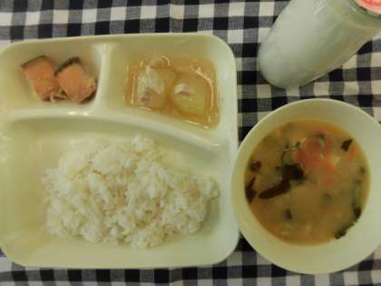 さけのつけ焼き、みそ汁、とうがんの煮もの、ごはん、牛乳 でした。