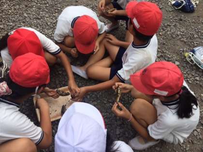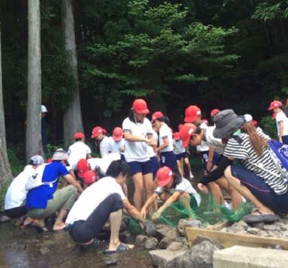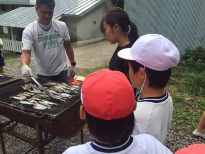 つかまえた魚に塩を振り、宿舎の方が焼いてくださいました。