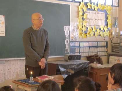 ろうそくをともすとお話の世界が広がります。子どもたちはお話の世界に