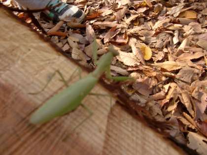 同じ頃えの森には、大きなカマキリが遊びに来ていました。