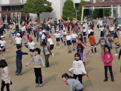 本日よりなわとび週間が始まりました。気温は少し低めでしたが、みんな元気よくなわとびをしていました。なわとびカードも順調に進んでいるようです。体力向上のため、一生懸命頑張ってほしいと思います。