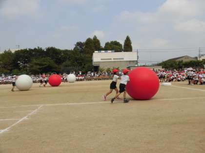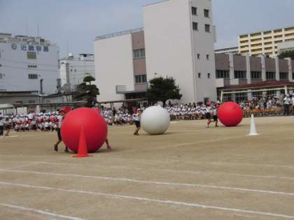 2年生の団体競技「コロコロバンバン」、大玉ころがしです。