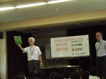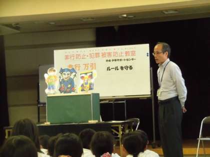 特に「万引き」について、金額の多寡にかかわらず窃盗という犯罪であること、おうちの人を悲しませること、お店の人を困らせることなど、ペープサートを通してわかりやすくお話しいただきました。