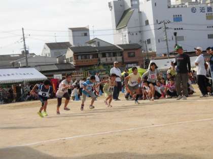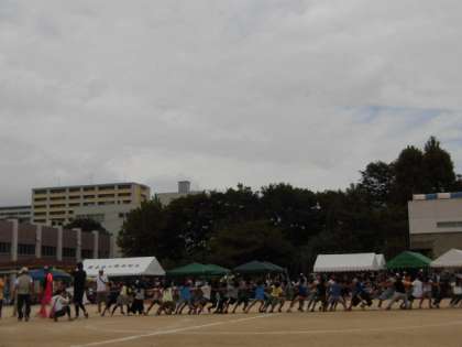 本校児童も、今日は「地域の子」「町会の子」として、ぬいぐるみおとし、個人走、パン食い競争、ザル引きリレー、綱引き、大玉ころがし、町会対抗リレーと、多様な種目に大勢出場していました。
