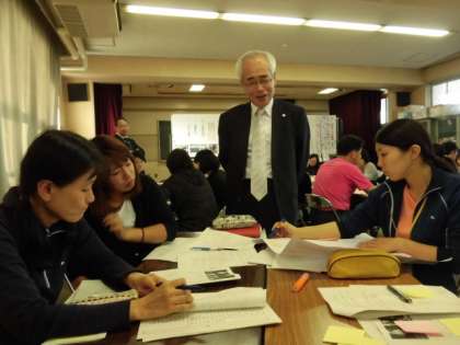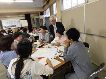 放課後の研究討議会では、もと大阪市立小学校の校長先生で、現在芦屋大学で教鞭をとっておられる、坪田秀雄先生にご指導いただきました。