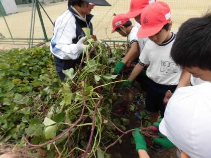 2年生が、さつまいもの収穫をしています。