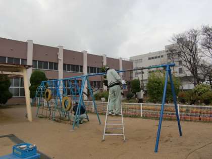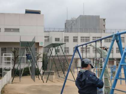子どもたちが安全に楽しく遊べるよう、寒いなかを作業してくれました。3学期も、元気に遊んでくださいね。
