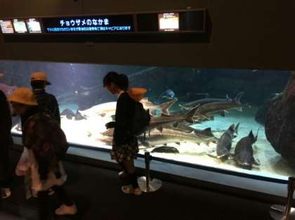 修学旅行 水族館で班活動中です