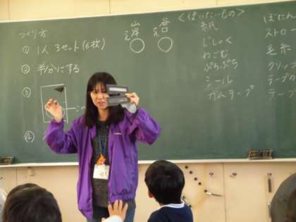 発言したいときは、挙手のかわりに拍手をします。「牛乳パックだけ、入れ物の上にへこんでいるところがあります。」など、子どもたちは思いのほかユニバーサルデザインについてよく知っており、ゲストティーチャーの方々も驚いておられました。