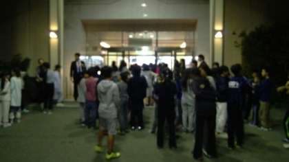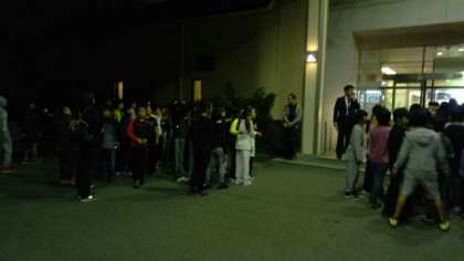 部屋割りの後の、避難訓練の様子です。