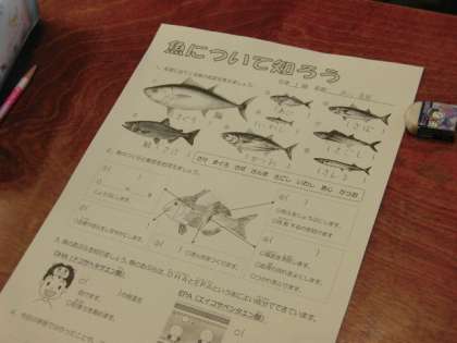給食に出てくる魚の姿と名前(漢字も)を知ることに始まり、魚の部位によるはたらきの違い、魚のあぶら(DHA、EPA)のはたらきを学びました。