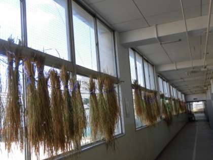 南校舎2階の廊下を通ると、稲のいい香りがします。