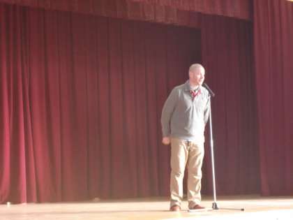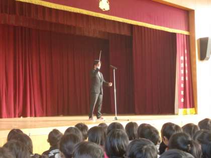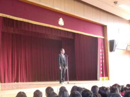 3学期から「C−NET(osakaCity-Native English Teacher) 」という事業が始まります。イギリスのスコットランド出身の Barry Park バリー パーク先生が、火曜日と金曜日、5・6年生の外国語活動の時間に来てくださいます。始業式で、英語でのあいさつがありました。